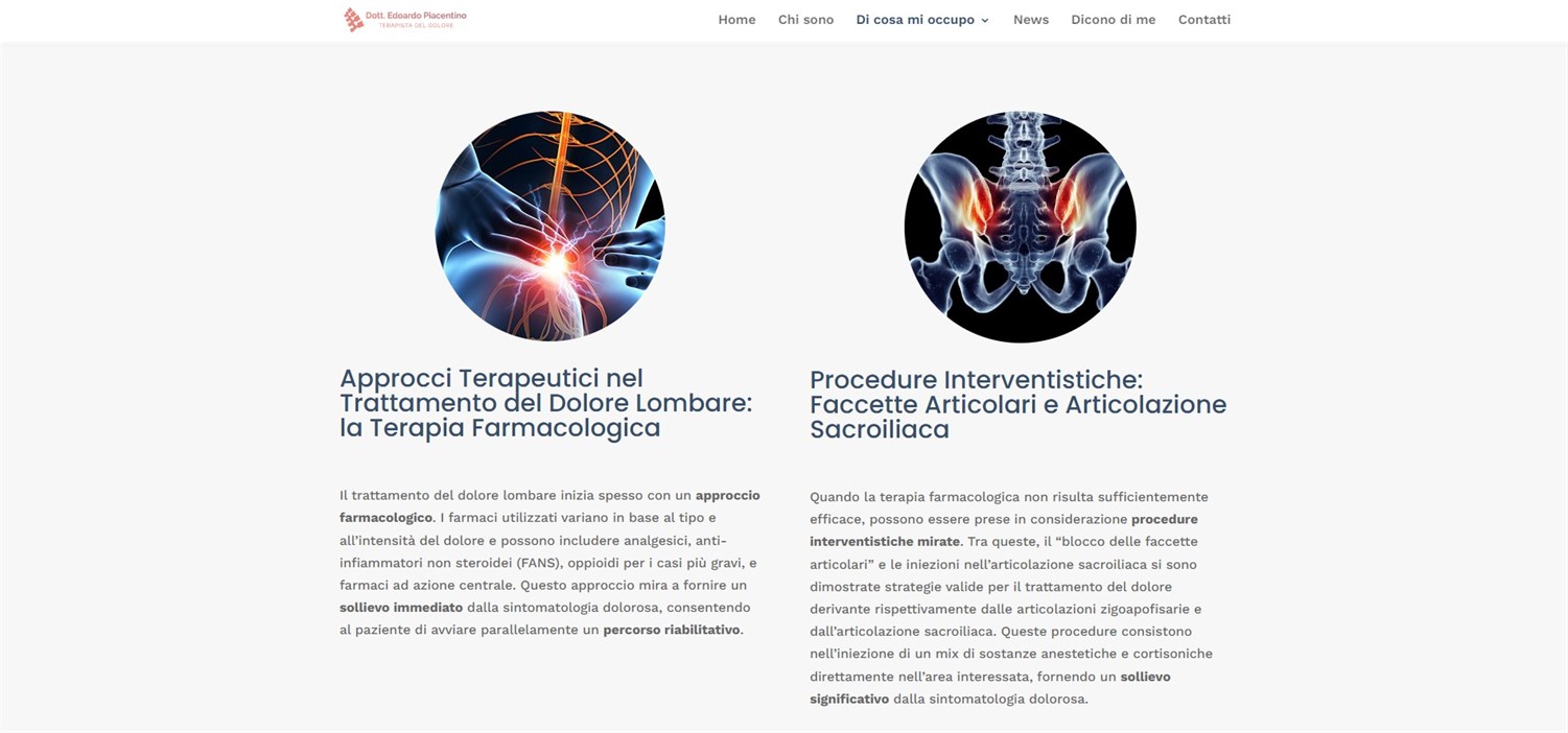 Per il Dr. Piacentino, abbiamo realizzato un sito web pensato per mettere subito in luce la sua professionalità e il supporto empatico che offre ai pazienti con dolore cronico. Abbiamo girato un video di presentazione e realizzato foto in studio, dando spazio alla sua autenticità e alla qualità del suo lavoro. L’attività su Google Ads e una strategia SEO ben strutturata permettono al dottore di farsi trovare facilmente da chi cerca un terapista del dolore affidabile e competente.